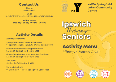 Phone: 0459 930 453 Email: ipswichthrivingseniors@ymcaqueensland.org.au Office Hours: Monday - Friday 8:00am - 4:00pm