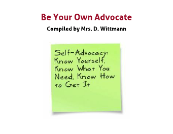 Be Your Own Advocate Compiled by Mrs. D. Wittmann