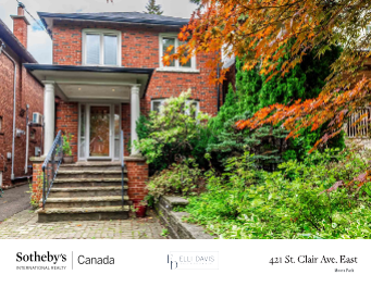 Welcome to this immaculate and traditional Moore Park residence, nestled in a treed setting on the quiet stretch of St. Clair Avenue East. This upgraded home offers a perfect balance of timeless character and modern comfort. The inviting main floor features a warm living room with hardwood flooring, a fireplace (closed), and leaded glass windows, alongside a formal dining room with wainscoting and crown moulding. A renovated galley style kitchen with quartz counters opens to a bright breakfast area overlooking the garden, with direct access to the deck and a convenient gas outlet for barbeques, ideal for entertaining. The upper level offers a spacious primary bedroom with a built-in closet and garden views, along with two additional bedrooms featuring hardwood floors, built in bookcases, and casement windows. The renovated main four piece bathroom combines modern finishes with timeless style, offering both comfort and elegance. The fully finished lower level has been recently renovated, providing a comfortable recreation space, a three piece bath with heated floors, and laundry facilities. Outdoors, the property offers a true oasis. Wild strawberries and gooseberry bushes flourish in the front yard, while the professionally landscaped fenced rear garden extends 143 feet deep. It includes underground irrigation and lighting, as well as plum, pink, red, and black currant bushes that bring seasonal beauty and variety. A garden shed provides practical storage and functionality. A legal front pad offers parking for one car. The location provides both convenience and tranquility, only steps from the Moore Park Ravine, Evergreen Brickworks, shopping, and public transit. This residence offers natural beauty combined with city living in one of Toronto's most desirable neighbourhoods.