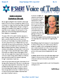 As we close out another year with the Voice of Truth (my first full year of editing), I wanted to give a big THANK YOU to all of the people who contribute to this monthly newsletter. Your articles and your pictures are what makes the Voice of Truth worth reading, AND it connects congregants near and far to all of B'ShERT's great events. Hopefully you look forward to every issue. Thank you, as always, to Audrey, our editor, for making my job easier every month. Now for a bit of house keeping: I would like to see our advertisements increase for next year. We have some several long-time advertisers who have been dedicated to offering their servces year after year. It would be nice to see some fresh faces or new business join their ranks. If you know a person or a business who would like to advertise on our newsletter, please have them email news@bshert.org. Note: all advertisements are subject to the approval of the editing and/or executive team. Have a great summer everyone! Bill