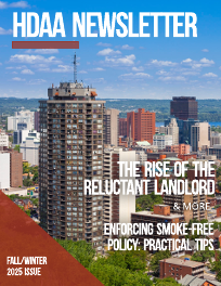 Articles and the views expressed in this newsletter reflect the individual author's opinions and not necessarily those of the Hamilton and District Apartment Association. We encourage anyone interested in submitting articles or providing comments and feedback to contact us at info@hamiltonapartmentassociation.ca. The HDAA attempts to provide the most accurate and up-to-date information available in this publication and through all contact with its members. However we accept no liability for any inaccurate information provided. Members should consult with appropriate professionals with regards to all important matters.