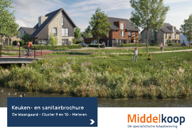 Gefeliciteerd met uw nieuwe woning in het project De Woongaard Cluster 9 en 10 te Meteren. Wij willen u, als één van de toekomstige bewoners van deze prachtige woningen, welkom heten in onze showroom. Maatwerk is voor Middelkoop een kernwoord, zo kunnen wij uw badkamer(s), toilet(en) en keuken geheel naar wens op maat maken. Sanitair en tegelwerk Uw toilet- en badkamer zijn meegenomen in de v.o.n. prijs van uw woning waarbij u zonder meerprijs een keuze kunt maken uit een aantal kleuren tegels. In de brochure zijn van enkele bouwnummers voorbeelden weergegeven van de toilet- en badkamer. Tijdens een persoonlijk adviesgesprek met een sanitairadviseur kunt u uw persoonlijke wensen uitgebreid bespreken, wij maken dan gelijk een 3D tekening van uw badkamer. Na uw akkoord zorgen wij dat de aannemer uw order en tekeningen ontvangt zodat de aannemer weet wat zij moeten maken. Keukeninrichting Als u bij Middelkoop de keuken aanschaft: Betaalt u geen coördinatiekosten aan de aannemer voor het maken van de nieuwe leidingtekeningen. Alle elektra basisaansluitingen worden binnen de keukenzone kosteloos verplaatst. Alle water en afvoer basisaansluitingen worden binnen de keukenzone kosteloos verplaatst. De vloerverwarming wordt kosteloos aangepast aan de keukencontouren. Al uw keukenwensen kunt u tijdens een persoonlijk adviesgesprek met onze keukenadviseur doornemen. Tijdens dit gesprek maakt de adviseur een 3D tekening in kleur welke u een helder beeld geeft van uw nieuwe keuken. Een aanbetaling is bij ons niet nodig. Na uw akkoord verzorgen wij het gehele vervolgtraject. De nieuwe leidingtekeningen versturen wij voor u naar de aannemer en controleren deze tijdens het bouwproces. Kortom, compleet ontzorgd! Disclaimer De artist impressions en foto’s in deze sanitair- en keukenbrochure zijn uitsluitend bedoeld om inzicht te geven en maken geen onderdeel uit van de contractstukken. Op de artist impressions aangegeven kozijnen/ramen/deuren zijn bij benadering getekend. Het meubilair en de apparatuur dienen alleen ter oriëntatie en is, tenzij anders aangegeven in de technische omschrijving, niet in de koopsom begrepen. De sanitair- en keukenbrochure behoort niet bij de aannemingsovereenkomst en daar kunnen geen rechten aan worden ontleend. Kortom, compleet ontzorgt! Alle rechten, druk– en zetfouten voorbehouden.
