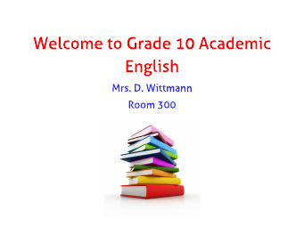 Welcome to Grade 10 Academic English Mrs. D. Wittmann Room 300