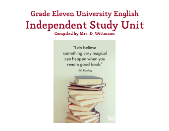 Grade Eleven University English Independent Study Unit Compiled by Mrs. D. Wittmann
