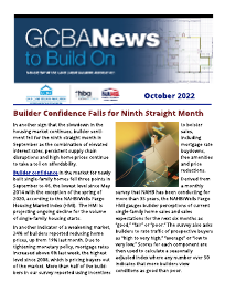 In another sign that the slowdown in the housing market continues, builder senti- ment fell for the ninth straight month in September as the combination of elevated interest rates, persistent supply chain disruptions and high home prices continue to take a toll on affordability. Builder confidence in the market for newly built single-family homes fell three points in September to 46, the lowest level since May 2014 with the exception of the spring of 2020, according to the NAHB/Wells Fargo Housing Market Index (HMI). The HMI is projecting ongoing decline for the volume of single-family housing starts. In another indicator of a weakening market, 24% of builders reported reducing home prices, up from 19% last month. Due to tightening monetary policy, mortgage rates increased above 6% last week, the highest level since 2008, which is pricing buyers out of the market. More than half of the build- bers in our survey reported using incentives to bolster sales, including mortgage rate buydowns, free amenities and price reductions. Derived from a monthly survey that NAHB has been conducting for more than 35 years, the NAHB/Wells Fargo HMI gauges builder perceptions of current single-family home sales and sales expectations for the next six months as “good,” “fair” or “poor.” The survey also asks builders to rate traffic of prospective buyers as “high to very high,” “average” or “low to very low.” Scores for each component are then used to calculate a seasonally adjusted index where any number over 50 indicates that more builders view conditions as good than poor.