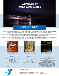 YMCA Camp Miller stands on 350 acres of tall pines, shoreline, and rustic wedding dreams. We are located 90 minutes north of the Twin Cities metro and 45 minutes south of Duluth. From our outdoor pavilion and outdoor chapel to zip line and twilight canoe photo opportunities, we are ready to make your wedding weekend as unique and perfect as you are. See how our accommodations can fit your vision for an unforgettable wedding, and of course, when you work with camp people, the sky is the limit on creativity and magic.