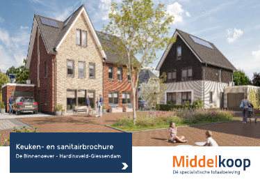 Gefeliciteerd met uw nieuwe woning in het project: De Binnenoever te Hardinxveld-Giesendam. Wij willen u, als één van de toekomstige bewoners van deze prachtige woningen, welkom heten in onze showroom. Maatwerk is voor Middelkoop een kernwoord, zo kunnen wij uw badkamer(s), toilet(en) en keuken geheel naar wens op maat maken. Voordelen sanitair en tegelwerk Wij bieden u een ruim assortiment wat we vertaald hebben in een showroom van ongeveer 4000 m2. Uw toilet-en badkamer zijn meegenomen in de v.o.n. prijs van uw woning waarbij u zonder meerprijs een keuze kunt maken uit een aantal kleuren tegels. Tijdens een persoonlijk adviesgesprek met een sanitairadviseur kunt u uw persoonlijke wensen uitgebreid bespreken, wij maken dan gelijk een 3D tekening van uw badkamer. Na uw akkoord zorgen wij dat de aannemer uw order en tekeningen ontvangt zodat de aannemer weet wat zij moeten maken. Voordelen keukeninrichting Als u de keuken bij Middelkoop aanschaft, heeft u de volgende voordelen: U betaalt geen coördinatiekosten aan de aannemer voor het maken van de nieuwe leidingtekeningen. Bij de keukenopstelling comfort heeft u de keuze uit 8 verschillende kleuren keukenfronten en 50 verschillende kleuren keuken werkbladen zonder extra kosten. Al uw keukenwensen kunt u tijdens een persoonlijk adviesgesprek met onze keukenadviseur doornemen. Tijdens dit gesprek maakt de adviseur een 3D tekening in kleur welke u een helder beeld geeft van uw nieuwe keuken. Een aanbetaling is bij ons niet nodig. Na uw akkoord verzorgen wij het gehele vervolgtraject. De nieuwe leidingtekeningen versturen wij voor u naar de aannemer en controleren deze tijdens het bouwproces. Kortom, compleet ontzorgt! Disclaimer De artist impressions en foto’s in deze sanitair- en keukenbrochure zijn uitsluitend bedoeld om inzicht te geven en maken geen onderdeel uit van de contractstukken. Op de artist impressions aangegeven kozijnen/ramen/deuren zijn bij benadering getekend. Het meubilair en de apparatuur dienen alleen ter oriëntatie en is, tenzij anders aangegeven in de technische omschrijving, niet in de koopsom begrepen. De sanitair- en keukenbrochure behoort niet bij de aannemingsovereenkomst en daar kunnen geen rechten aan worden ontleend. Kortom, compleet ontzorgt! Alle rechten, druk– en zetfouten voorbehouden.