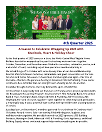 As the final quarter of 2025 comes to a close, the North Central West Virginia Home Builders Association wrapped up the year the best way we know how—together. October, November, and December were filled with connection, celebration, service, and a whole lot of heart, reminding us just how special our membership truly is. We kicked things off in October with some Spooky Vibes at our General Membership Event at Mario’s Fishbowl. Costumes, camaraderie, and great conversation set the tone for a fun and festive fall season. In November, members gathered again—this time at Muriale’s—thanks to the generous hosting of Advanced HVAC & Plumbing. These events continue to be a reminder that our strength lies in showing up for one another. December brought moments that truly defined the spirit of NCWVHBA. On December 3, we proudly held our first-ever community service project partnered with the Rosenbaum House Meal Program. Volunteers from First Exchange Bank, First United Bank & Trust, Huntington Bank, Advanced HVAC & Plumbing, ALD Enterprises, JMS Heating & A/C—and of course, Quacker—came together to serve meals and give back in a meaningful way. It was a powerful start to what we hope will become a lasting tradition of service. Just days later, on December 6, members gathered for our beloved “A Cranberry Noel” Christmas Party & Honors Gala—an evening filled with elegance, laughter, and well-deserved recognition. We proudly honored our 2025 sponsors: SRS Building Products, Huntington Bank, Advanced HVAC & Plumbing, Don’s Appliances, and Koval Building Supply, whose continued support helps make everything we do possible. The night also celebrated outstanding individuals within our association: • Shining Star Award – Phil Garber, Bruceton Power Washing • Life Directorship Awards – Danny Adams (Advanced HVAC & Plumbing) and Terri Boone (ALD Enterprises) • Presidential Awards – Patti Shamblin (PAS Consulting), Doug & Jamie Burch (Creek Siding & Roofing) • Associate Member of the Year – Melanie Thompson, Huntington Bank • Career Achievement Award – Kent Pauley, Lanta Contractors Adding to the joy, our silent auction raised over $1,900, benefiting the Toy Fund for WVU Medicine Children’s Hospital—a true testament to the generosity of our members. The giving didn’t stop there. On December 8, Tom Board and his “elves” took on toy shopping for our ten counties, ensuring a brighter holiday season for children in our community. By week’s end, toys were delivered by special elves from Central Supply, Royal Glass, Rising Sun Construction, Kitchens and Baths by Design, Veritas Contracting, and O’Connor Contracting—all coordinated by Tom Board of Builders FirstSource / O.C. Cluss Lumber Company. It was teamwork at its finest. As we reflect on the final days of 2025, we’re filled with gratitude—for our members, our sponsors, our volunteers, and the shared mission that brings us together. With these moments behind us and exciting plans ahead, we look forward to all that 2026 will bring for our organization and its members. Here’s to another year of building community, supporting one another, and doing good—together.