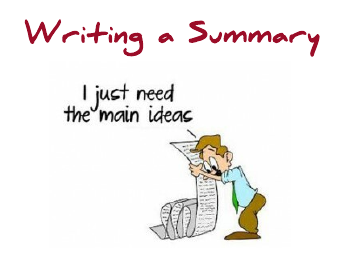 Steps Before Writing a Summary 1. Read the passage. 2. Comment on the title. Are there any words you do not understand Is the title asking a question Does the title state a position 3. Highlight the first and last sentence of the passage. Identify the MAIN ideas. Distinguish the main ideas from the details. 4. Highlight keywords. Think about who, what, where, when, why, and how.