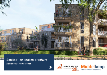 Gefeliciteerd met uw nieuwe woning in het project Adelaarshof te Apeldoorn. Wij willen u, als één van de toekomstige bewoners van deze prachtige woningen, welkom heten in onze showroom. Maatwerk is voor Middelkoop een kernwoord, zo kunnen wij uw badkamer(s), toilet(en) en keuken geheel naar wens op maat maken. Voordelen sanitair en tegelwerk Wij bieden u een ruim assortiment wat we vertaald hebben in een showroom van ongeveer 4000 m2. Uw toilet-en badkamer zijn meegenomen in de v.o.n. prijs van uw woning waarbij u zonder meerprijs een keuze kunt maken uit een aantal kleuren tegels. Tijdens een persoonlijk adviesgesprek met een sanitairadviseur kunt u uw persoonlijke wensen uitgebreid bespreken, wij maken dan gelijk een 3D tekening van uw badkamer. Na uw akkoord zorgen wij dat de aannemer uw order en tekeningen ontvangt zodat de aannemer weet wat zij moeten maken. Voordelen keukeninrichting Als u de keuken bij Middelkoop aanschaft, heeft u de volgende voordelen: Alle elektra basisaansluitingen worden kosteloos verplaatst. Alle water en afvoer basisaansluitingen worden kosteloos verplaatst. De vloerverwarming wordt kosteloos aangepast aan de keukencontouren. U betaalt geen coördinatiekosten aan de aannemer voor het maken van de nieuwe leidingtekeningen. Bij de keukenopstelling comfort heeft u de keuze uit 8 verschillende kleuren keukenfronten en 50 verschillende kleuren keuken werkbladen zonder extra kosten. Al uw keukenwensen kunt u tijdens een persoonlijk adviesgesprek met onze keukenadviseur doornemen. Tijdens dit gesprek maakt de adviseur een 3D tekening in kleur welke u een helder beeld geeft van uw nieuwe keuken. Een aanbetaling is bij ons niet nodig. Na uw akkoord verzorgen wij het gehele vervolgtraject. De nieuwe leidingtekeningen versturen wij voor u naar de aannemer en controleren deze tijdens het bouwproces. Kortom, compleet ontzorgt! Disclaimer De artist impressions en foto’s in deze sanitair- en keukenbrochure zijn uitsluitend bedoeld om inzicht te geven en maken geen onderdeel uit van de contractstukken. Op de artist impressions aangegeven kozijnen/ramen/deuren zijn bij benadering getekend. Het meubilair en de apparatuur dienen alleen ter oriëntatie en is, tenzij anders aangegeven in de technische omschrijving, niet in de koopsom begrepen. De sanitair- en keukenbrochure behoort niet bij de aannemingsovereenkomst en daar kunnen geen rechten aan worden ontleend. Kortom, compleet ontzorgt! Alle rechten, druk– en zetfouten voorbehouden.