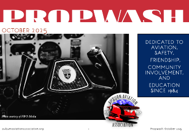 OFFICERS President - Chris Haven - president@auburnaviationassociation.org Vice President - Dan Flom - vp@auburnaviationassociation.org Secretary - Doug Fee - secretary@auburnaviationassociation.org Treasurer - David Dwelle - treasurer@auburnaviationassociation.org BOARD MEMBERS Past President - Doug McDougal - pastpres@auburnaviationassociation.org Scholarship Director - Don Wolfe - flyfund@auburnaviationassociation.org Assistant Scholarship - James Jacobson - skyfund1539@gmail.com Membership Director - Daniel Colburn - membership@auburnaviationassociation.org Publicity Director - David Sanborn - publicity@auburnaviationassociation.org Propwash Editor - Mike Duncan - duncan7kcab@sbcglobal.net 5AC Chair - Ken Dwelle - 5ac@auburnaviationassociation.org Board Member at Large - Joanie Mooneyham - joaniemoon05@gmail.com Donations Coordinator - Nancy Benjamin - don_benj@pacbell.net Special thanks to Brooklyn Brown for laying out the newsletter and David Sanborn for managing distribution of the newsletter.