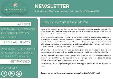 Adelaide Adult ADHD is a community and a voice for adults with ADHD.