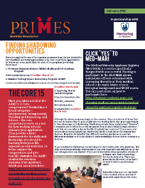 Have you applied for any of the summer programs from the last newsletter yet? Deadlines are fastly approaching so be sure to get those applications in! Below are some quick links for each of the programs previously mentioned: 1. Northeast Regional Alliance (NERA) MedPrep HCOP Academy Program www.neramedprep.org (Deadline: March 1st) 2. Summer Undergraduate Mentorship Program (SUMP) einstein.yu.edu/centers/hispanic-centers-of-excellence/opportunities.aspx (Deadline: March 2nd) 3. Exploring Health Careers Program https://sls.downstate.edu/ diversity_education/ diversity/pipeline_ programs.html (Deadline: March 2nd) Although the above programs begin in the summer, there are plenty of things that you can do before then to gain insight into the medical field. One great opportunity to take advantage of is shadowing. Shadowing entails being a physician's "shadow"; it requires you to follow he or she around as they go about their normal schedule such that you see what a day in the life of a physician consists of. If you were ever unsure about being a physician, shadowing can be a huge factor for making that decision. However, be mindful that different medical specialties necessitate different workdays so it's a good idea to shadow multiple doctors before coming to a decision. To get involved in shadowing, the best place to start is with your own physician. Not only could you potentially shadow him or her, you could also ask whether he or she has colleagues you can shadow. If you are interested in other specialties outside of primary care, start researching doctors in your area. There are great tips in Objective 1.8 in Unit 1 on how to write a professional email. Remember that you, too, can make it into medical school, and that it starts with experiences like these.