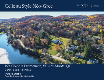 159, Ch de la Promenade, Val-des-Monts, QC 6 CAC 3 SDB 8 472 M.C François Emond, Courtier immobilier résidentiel