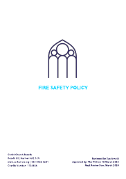 Contents Introduction .............................................................................................................3 Responsibility ..........................................................................................................3 General Fire Safety Planning ......................................................................................3 Fire Risk Assessment .................................................................................................4 Staff, Wardens and Stewards ......................................................................................4 Fire Drills and Logs ....................................................................................................4 Location of Shut off Valves .........................................................................................4 Fire Safety Guidance for those using Christ Church Roxeth ............................................5 Smoking ...................................................................................................................5 Exit Routes ...............................................................................................................5 On suspicion or discovery of a fire or on hearing the alarm ............................................5 Location of Shut off Valves .........................................................................................5 Introduction The purpose of this policy is to outline the way in which the Parochial Church Council (PCC) aims to safely manage Christ Church Roxeth in line with good fire safety practice to protect all those using the building. It is also to ensure that we comply with the legal obligations of the Regulatory Reform (Fire Safety) Order 2005 that became effective in October 2006 and to take account of theSmoking ban introduced in July 2007. The most recent updates from 2022 do not apply to Christ Church. Responsibility The responsibility for fire safety arrangements within the Church rests with the PCC. The PCC delegates the day-to-day management of the policy to the PCC Premises . General Fire Safety Planning The Church premises have been equipped with a number of general features to improve fire safety: ·Emergency lighting along routes to fire exits ·Smoke detectors in areas where there is greater likelihood of a fire starting ·Manual gas cut-off switch ·Adequate, well maintained fire safety equipment ·Appropriate signage including marked fire exits The PCC Premises Team will oversee the maintenance of these systems and equipment in accordance with the required schedules. The PCC Premises Team in liaison with the Church Administrator will ensure that a number of basic ‘good housekeeping’ procedures are followed: ·Waste bins will be emptied regularly. ·External bins will be emptied weekly or as per London Borough of Harrow schedule. ·All escape routes and fire exits will be kept clear and rooms kept tidy. ·Any flammable cleaning materials will be stored in a locked store . The PCC Premises Team will also conduct specific processes and encourage a number of practices to minimize the risks of a fire starting and minimize the risk to individuals in the unlikely event of a fire. These will be based on an annual Risk Assessment. Any significant finding from this assessment will be reported to the PCC and acted upon. The PCC Premises Team will ensure that the annual review takes account of new legislation requirements and update the policy accordingly. Those hiring / making use of the premises will also be provided with information on the action to take on discovering a fire and to support the safe evacuation of the building. (See Fire Safety Guidance for those using the Church at the end of this document). Fire Risk Assessment The PCC Premises Team will undertake the annual risk assessment using the process and format recommended by our insurance company. This review will look at all aspects of fire safety and will enable it to identify any actions the PCC needs to take to improve safety. The key aspects of the assessment are: 1.Information about our church 2.Our fire risk assessment 3.Our arrangements for fire safety 4.Our action plan to reduce fire risk Staff, Wardens and Stewards Staff, Churchwardens, Service Wardens and Stewards will be given training and guidance to support the PCC in the implementation of the Fire Safety Policy: 1.Identification of the fire detection & alarm systems operating in the building 2.The action to be taken on discovery of a fire or hearing the alarm 3.The evacuation procedure, including procedure for directing members of the public, and other occupants – paying particular attention to those who are physically disabled and those with impaired sight & hearing – to the exits and off the premises 4.The arrangements for calling the Fire Brigade 5.The location and purpose, and use, of firefighting equipment 6.The location and accessibility of electrical and gas shut off valves 7.The detail, and location, of escape routes, especially those not in regular use, as well as the importance of keeping access to escape routes clear 8.The method of opening all escape doors 9.The importance of keeping fire doors closed in order to prevent the spread of fire, heat and smoke 10.The importance of general fire precautions and good housekeeping Fire Drills and Logs Fire Drills will be conducted twice a year on a Sunday and a week-day. A log book is completed as required by The Regulatory Reform (Fire Safety) Order 2005 (FSO) Location of Shut off Valves Key holders and those who regularly use the building will be made aware of the location of the main shut off valves for when the emergency services require this information. ·The gas shut-off valve is located in the storeroom at the bottom of the main stairs (door 31) ·The water shut-off valve is located on the footpath at the top of the drive. ·The electrical distribution units are located in the church porch a