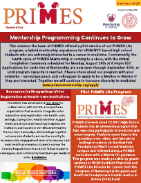 This summer the team at PrIMES offered a pilot version of our PrIMES Lite program, a hybrid mentorship experience for URiM NYC based high school students who are extremely interested in a career in medicine. Concurrently, the fourth cycle of PrIMES Mentorship is coming to a close, with the virtual Completion Ceremony scheduled for Monday, August 28th at 6:00pm EDT. Applications for cycle five of Mentorship are now open through September 30th, or until program capacity is reached. Please share about our program with your networks - encourage peers and colleagues to apply to be a Mentee or Mentor if they are interested. Together we will continue to increase diversity in medicine! www.primesmentorship.org/apply