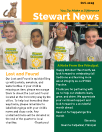 PTA generously provides a Stewart shirt for all students. We encourage students to wear their shirts every Friday! Teachers also may request students wear their Cougar shirts on field trip days. Thank you PTA for your support of our school! This is an opportunity to build a sense of community among our students.