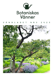 Opera Flora En utställning om växtfärgning och ecoprint i Operans kostymvärld. Håller på i Floras rike till och med den 14 sep. Vår kommunikation med dig Vår kommunikation med dig gör vi via vår hemsida, botaniskasvanner.se, via våra nyhetsbrev och sist men inte minst via vårt Vänblad. Meddela gärna om du bytt e-postadress, mobilnr eller flyttat. Det gör du på info@botaniskasvanner.se Läs Vänbladen digitalt Då får du tillgång till alla länkar och möjligheter till lättare läsning. Enkelklicka på bilder och dubbelklicka på texter. En gång till för att återgå. Botaniska trädgårdspodden Lyssna på Botaniska trädgårdspodden som är sponsrad av Vännerna. Här finns alla länkar botaniska.se/podd. Utnyttja dina rabatter! Besök våra samarbetspartners och glöm inte att visa medlemskortet före betalning. Tips Fotografera ditt medlemskort med nummer och namn och spara det i din mobil för säker åtkomst. Omslagsbild. Gramina et Flores