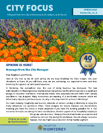 City Focus is published by the City of Monterey's Communications & Outreach Office to inform citizens about the programs, services and activities of city government. City Focus is available by email subscription and is posted online in January, April, July and October. See back issues at monterey.gov/cityfocus.