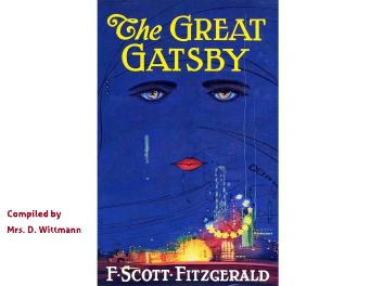 CHAPTER ACTIVITIES Chapter One: Who’s Who? Who’s Where? (map colouring) Chapter Two: Figurative Language Chapter Three: Gatsby's parties Chapter Four: Allusions and flashbacks Chapter Five: Found Poetry Chapter Six: Platonic Conception – reinvent yourself Chapter Seven: The Plaza Hotel – dramatization Chapter Eight: Tracking George / The Holy Grail Chapter Nine: General Resolves (childhood book) / Minor Characters