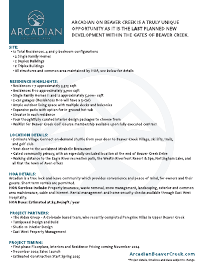 and golf club Next door to the acclaimed Mirabelle Restaurant Gated community privacy, with an especially secluded location at the end of Beaver Creek Drive Walking distance to the Eagle River recreation path, the Westin Riverfront Resort & Spa, Nottingham Lake, and all that the town of Avon offers HOA Details: Arcadian is a true lock-and-leave community which provides convenience and peace of mind, for owners and their guests. Short term rentals are permitted. HOA Services Include: Property insurance, waste removal, snow management, landscaping, exterior and common area maintenance, cable and internet. Rental management and home security checks available through East West Hospitality. HOA Dues: Estimated at $4.80/sqft / year Project Partners: The Aidan Group - A Colorado based team, who recently completed Peregrine Villas in Upper Beaver Creek Turnipseed Design and Build Studio 10 Interior Design East West Property Management Project Timing: First phase Floorplans, Interiors and Residence Pricing coming November 2024 December 2024 Sales Launch Estimated Construction Start Spring 2025