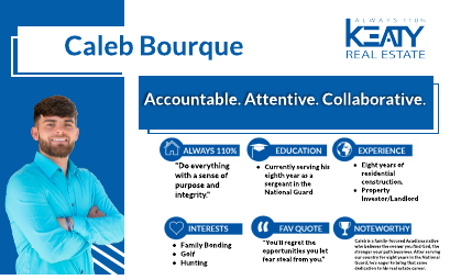 Caleb is a family-focused Acadiana native who believes the sooner you find God, the stronger your path becomes. After serving our country for eight years in the National Guard, he’s eager to bring that same dedication to his real estate career.