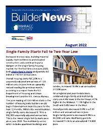 Increased interest rates, building material supply chain bottlenecks and elevated construction costs continue to put a damper on the single-family housing market. For the first time since June 2020, both single-family starts and permits fell below a 1 million annual pace. Overall housing starts fell 2.0% to a seasonally adjusted annual rate of 1.56 million units in June from an upwardly revised reading the previous month, according to a report from the U.S. Department of Housing and Urban Development and the U.S. Census Bureau. The June reading of 1.56 million starts is the number of housing units builders would begin if development kept this pace for the next 12 months. Within this overall number, single-family starts decreased 8.1% to a 982,000 seasonally adjusted annual rate. This is the lowest single-family starts pace since June 2020. The multifamily sector, which includes apartment buildings and condos, increased 10.3% to an annualized 577,000 pace. On a regional and year-to-date basis, combined single-family and multifamily starts are 4.4% lower in the Northeast, 4.7% higher in the Midwest, 11.1% higher in the South and 0.4% lower in the West. Overall permits decreased 0.6% to a 1.69 million unit annualized rate in June. Single-family permits decreased 8.0% to a 967,000 unit rate. Multifamily permits increased 11.5% to an annualized 718,000 pace.