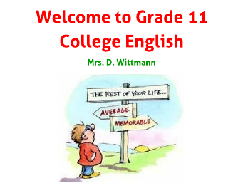 .Welcome to Grade 11 College English Mrs. D. Wittmann