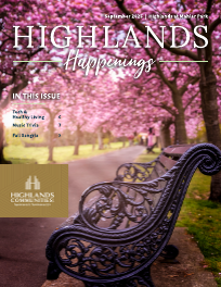 September BIRTHDAY CELEBRATION Is your special day in September? Join us for a birthday treat in the Community Room on Tuesday, September 9th at 2pm compliments of the Highlands. The September birthday treat will be Apple Pie à la Mode. $3 for all other residents. RSVP required.