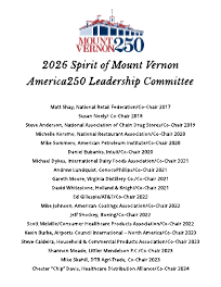 2026 Spirit of Mount Vernon America250 Leadership Committee