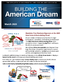 NAHB's Builders' Show Largest in 17 years More than 81,000 builders, remodelers, developers and other home building professionals filled the exhibit halls of the Las Vegas Convention Center for the 81st NAHB International Builders’ Show® (IBS), the largest annual light construction show in the world, Feb. 25-27. This marks the largest show in 17 years. Attendees visited more than 1,800 exhibitors over 728,000 net square feet, exploring innovative building pro- ducts and technology to advance the industry and enhance new homes. Beneficial Ownership Info Now Due by March 21 As a result of a recent federal court ruling, many small businesses will need to comply with the Corporate Transparency Act (CTA) and report beneficial ownership information (BOI) by March 21, 2025, to the Financial Crimes Enforcement Network (FinCEN). On Feb. 19, 2025, FinCEN released new guidance stating that as a result of a Texas federal judge lifting a nationwide injunction in the case of Smith v. United States Department of the Treasury, BOI reporting require- ments under the CTA are now back in effect. Note: The March deadline does not apply to all entities.