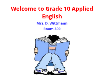 Welcome to Grade 10 Applied English Mrs. D. Wittmann Room 300