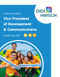 The Vice President of Development and Communications provides visionary leadership to advance Didi Hirsch’s philanthropic goals of raising $5M+ annually. Leading a department of 15, the Vice President will lead a comprehensive development plan including major and planned giving, institutional partnerships, and high-impact special events. Simultaneously, the Vice President will drive an integrated marketing and communications strategy to elevate Didi Hirsch’s national profile, strengthen its brand, and advance the vital work of reducing stigma around mental health, suicide, and substance use. This role will serve as a strategic partner to the CEO, Executive Team, and Board of Directors, driving both short-term results and long-term sustainability.