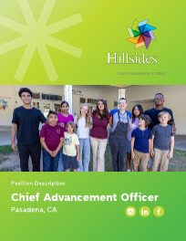 Reporting directly to the Chief Executive Officer, the Chief Advancement Officer will play a critical role in developing and implementing integrated fundraising strategies to support Hillsides’ mission. As a member of the Senior Leadership Team, the Chief Advancement Officer will actively participate in executive leadership efforts to help shape and lead a culture grounded in accountability and innovation, while leading and developing a high-performing advancement team of five. Fundraising responsibilities will include major gifts, corporate giving, annual giving, capital campaigns, individual giving, institutional giving, planned giving, special events, and in-kind support.