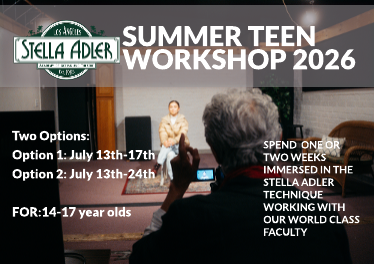 Price: July 14th-18th: $650 July 21st-25th: $1200 Returning participants July 20th-24th: $500 Application fee: $35 (non-refundable) 14-17 yrs old Once accepted you will be required to pay a 50% non-refundable deposit To reserve a spot in the workshop. To begin your application click here. *Limited Scholarships Available for Financial Need. Please inquire with Alex Aves: alex@stellaadler-la.com More info: Stellaadler-la.com 323-465-4446